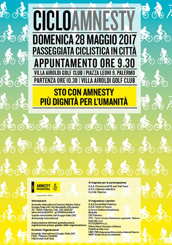 LA PASSEGGIATA IN BICI IN GIALLO PER AMNESTY INTERNATIONAL DOMENICA 28 MAGGIO 2017